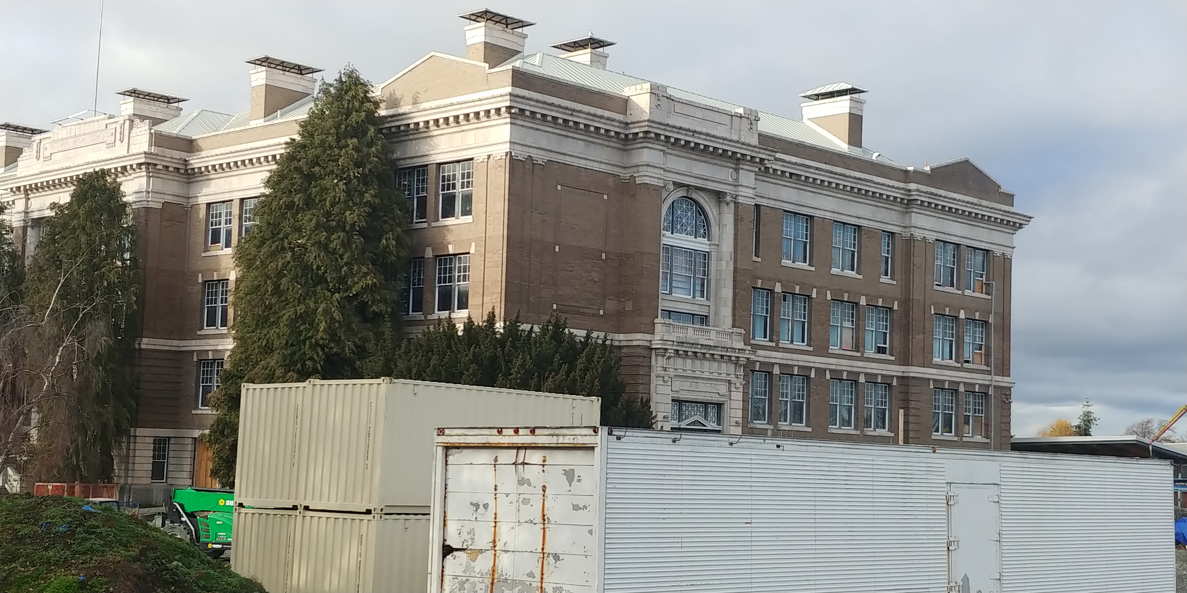 Elsewhere in the neighbourhood an old school is being seismically upgraded, to the tune of well over $80M dollars – that’s a lot of dog food. My papa’s parents attended that very school which displays the signs “boys’ entrance” and “girls’ entrance” on each side of the building. I wonder if they will cover those signs up in today’s non-binary gender world.