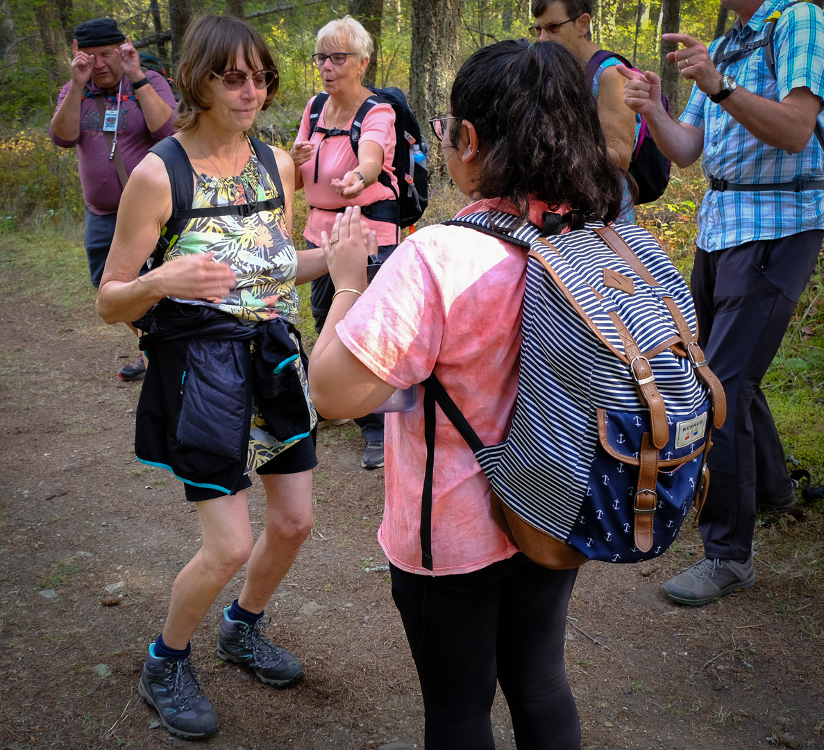 As I write these words shortly before breakfast on the threshold of our departure, I should mention two ways we have celebrated our dis-assembly. In the woods near a parking lot, we stood shoulder to shoulder in a circle. In a ritual of hand rubbing, knee slapping and appreciative finger pointing we celebrated each other’s presence, contributions and achievements. The game was playful, respectful, and poignant.