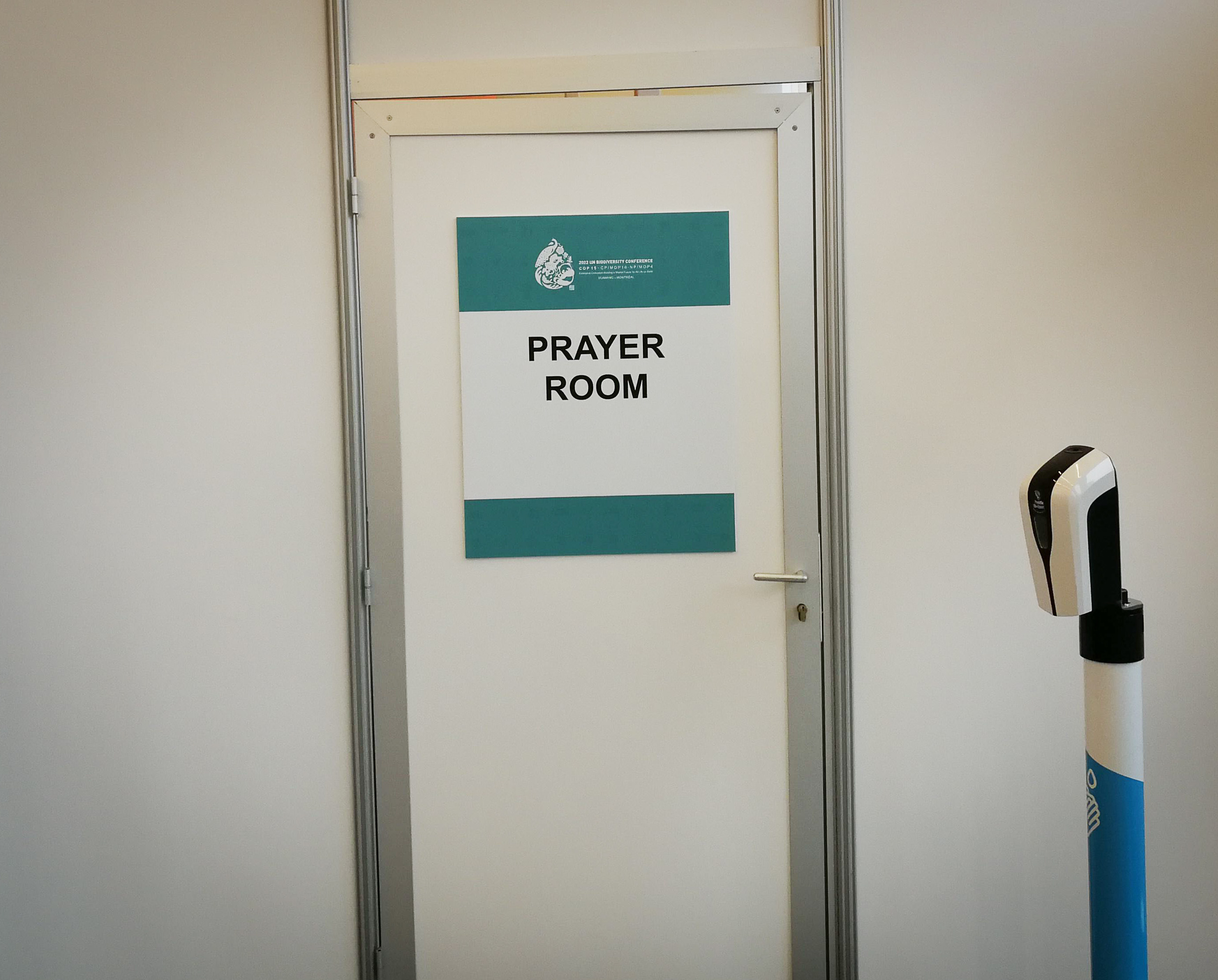 Having worked with the CBD for many years, I at least knew how to navigate the site (which is huge by the way – I walked more than 11,000 steps on my first day and I was only there for a few hours!). I went looking for the Faith-based Kiosk and before finding it ran into the sign to the Prayer Room – so took a side trip to check it out. It was empty at that hour of the morning – a large room with cushioned seating. I said a short prayer for the day’s negotiations and went off to find the allocated Faith-based space.