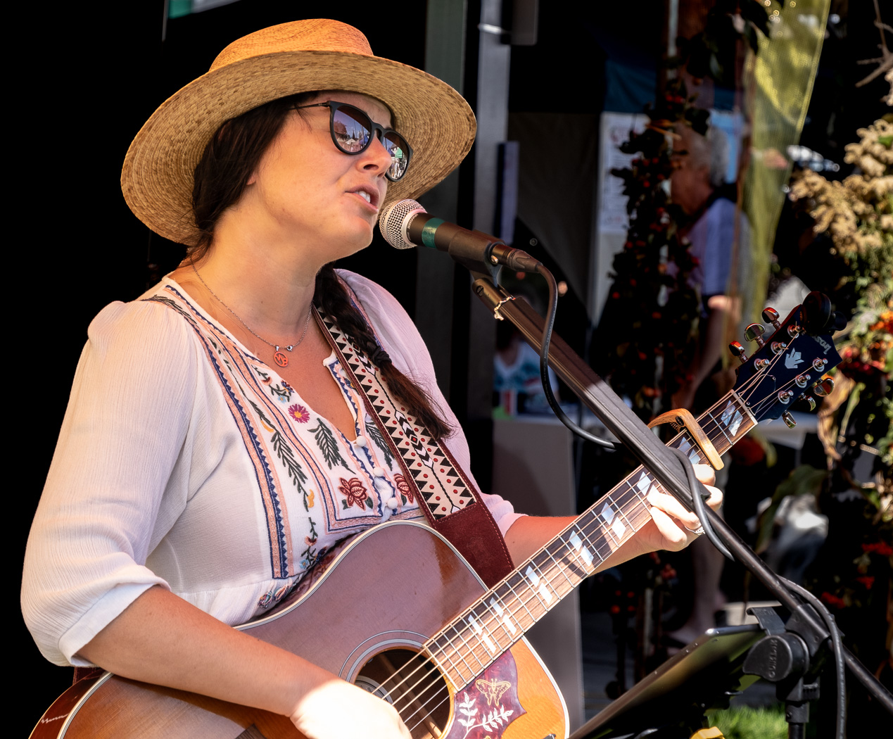 Best of all, I met up with people of all sorts and conditions: Jim, Linnea, Joan, Christine, Jul, Art, Shirley, Jen, David, Kathy—and those I have forgotten—folks from church, from the dog park, singers and players from musical groups, folks from our old baby-sitting co-op, fellow authors and composers, and one dump-truck driver. I visited, enjoying the music, finding great images to photography, all under dazzling sunshine accompanied by a light breeze.