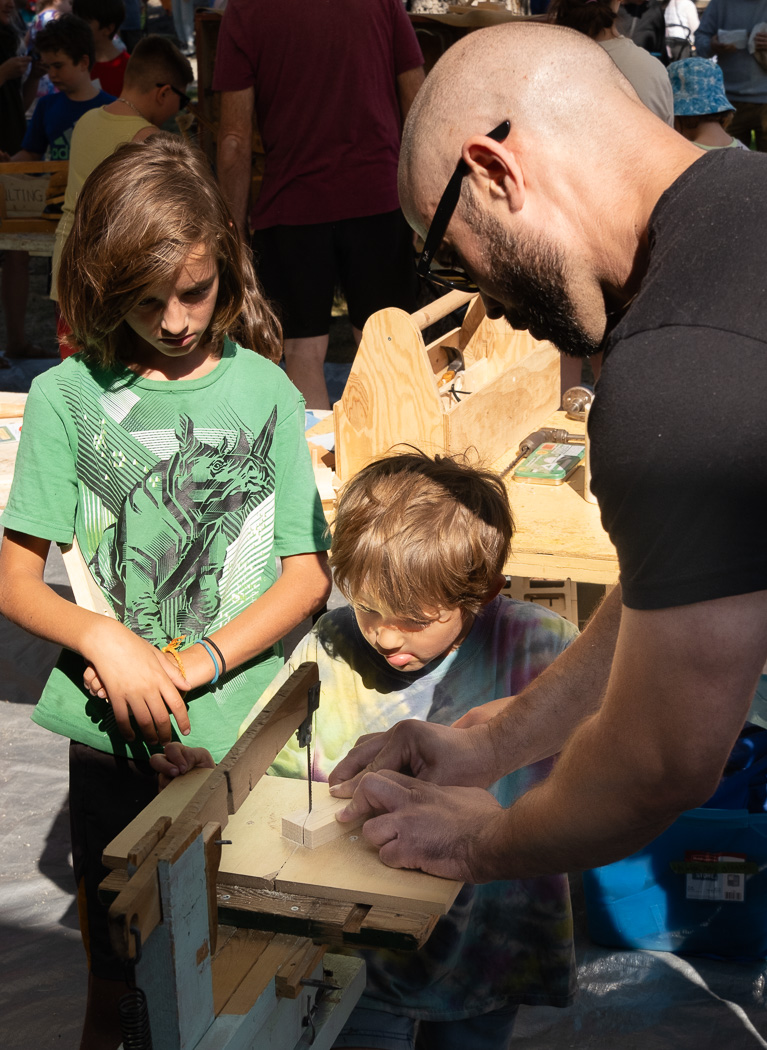 I was so delighted to see the Pioneer Workshop continue. Its creator, the late John Slaghouse created an ingenious collection of manual woodworking tools for kids to enjoy and demonstrate for a curious audience. I am so glad a local shop teacher has taken up the tradition that remains a popular destination for aspiring creators.