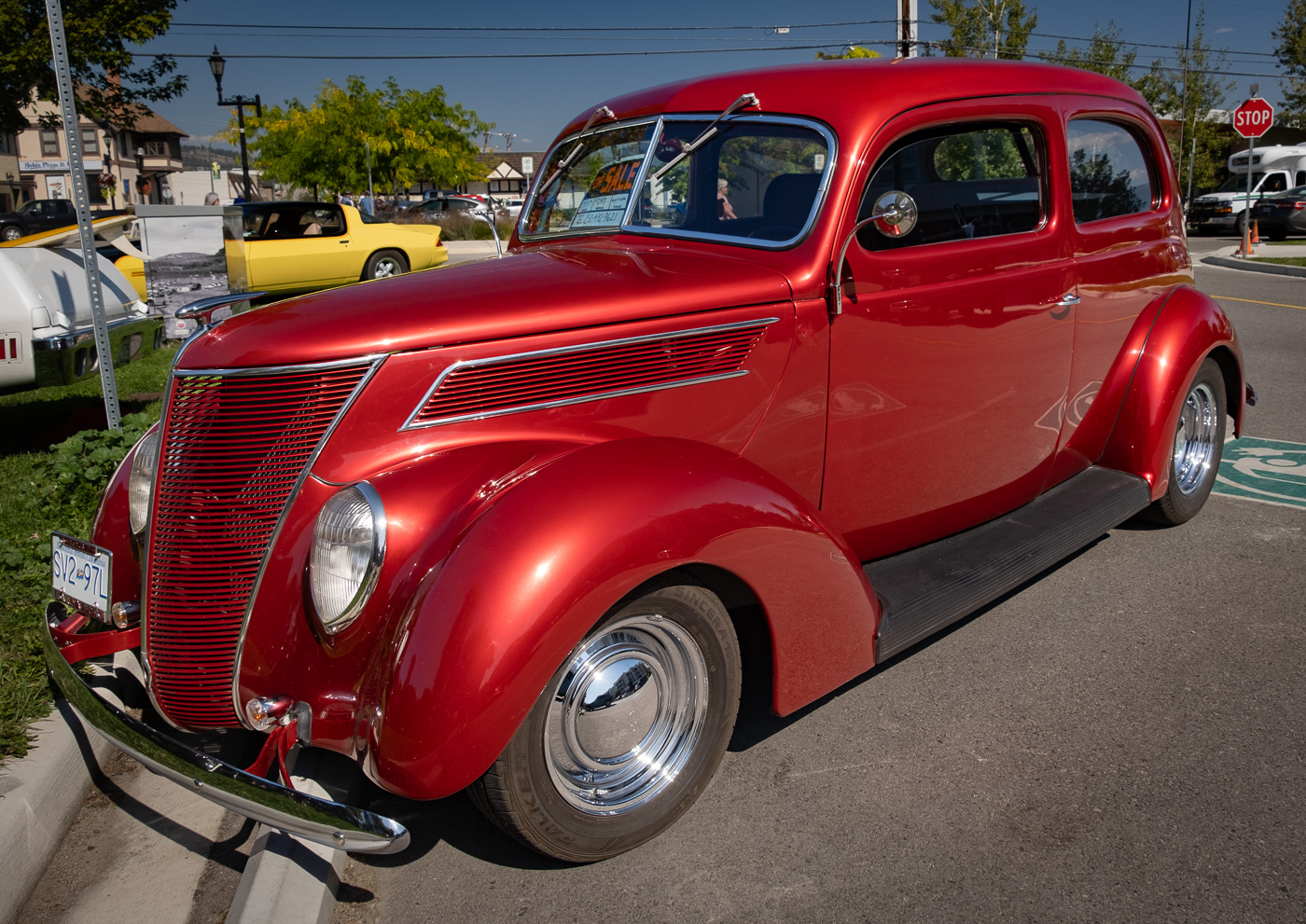 I asked several bystanders where the TAFA booth was located, but no one knew—I received only puzzled looks and pity—people had other priorities. We were surrounded by perhaps 100 beautifully restored cars. While a few appeared a bit past their prime; others looked as they did when they first came off the assembly line as far back as the 1930s. Coupes, pickup trucks, jeeps, and sports cars, sedans, station wagons—and the inimitable “car of the people,” the Volkswagen—all lined up as far as the eye could see, in Summerland’s downtown Memorial Park this past early September weekend.