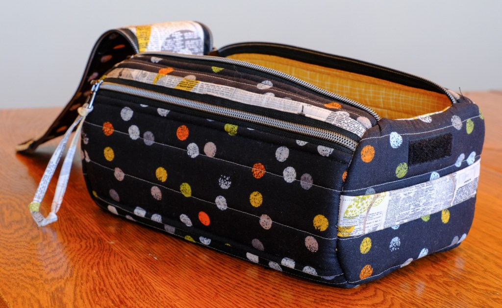 The work is challenging for sure. While I am an experienced sewer—I own good equipment and have a wonderful large and quiet space in which to work—I needed to concentrate in order to keep track of all of the different pieces—and there were a lot of pieces with this project. Inserting the end sections and binding the end seams required particular patience and care—I stitched my finger at one point. Ouch. In the end, well the images speak for themselves. I am very pleased with the outcome. The finished product is very professional looking and functional. It’s kind of like doing a puzzle. I love working with fabric.