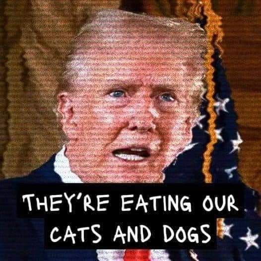Harris never plays up gender though I bet a lot of Americans still have trouble seeing their president as a woman. And of course, we get the Don-Old nutbar stuff around cats and dogs, massive crowds, and the execution of children. Same old stuff. And some people believe this s**t. Out of the mouth of . . . Don-Old.