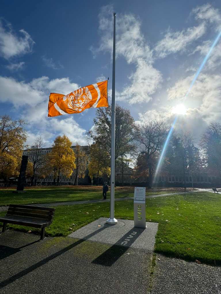 In mourning the profound loss, and out of respect for the incomparable Murray Sinclair, today we lowered the Survivor flag at UVic. His wisdom and generosity have had a huge impact on so many levels for so many people, including me. I will always cherish how he used simple words to explain complex issues, and look to uphold the example he set as someone with the courage to fight for his principles. Rest in strength.