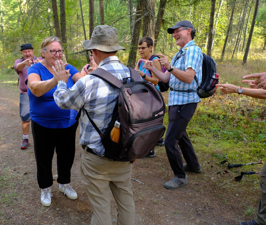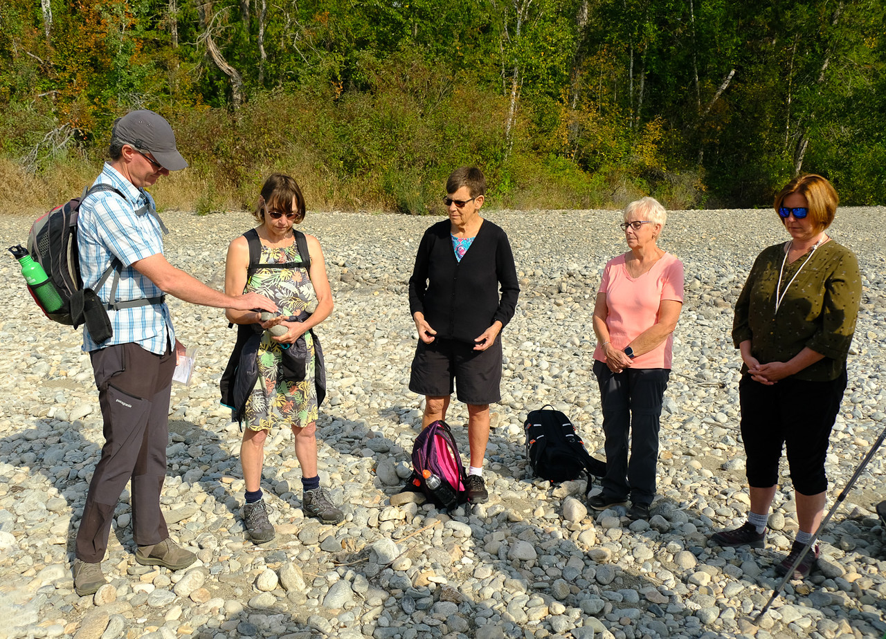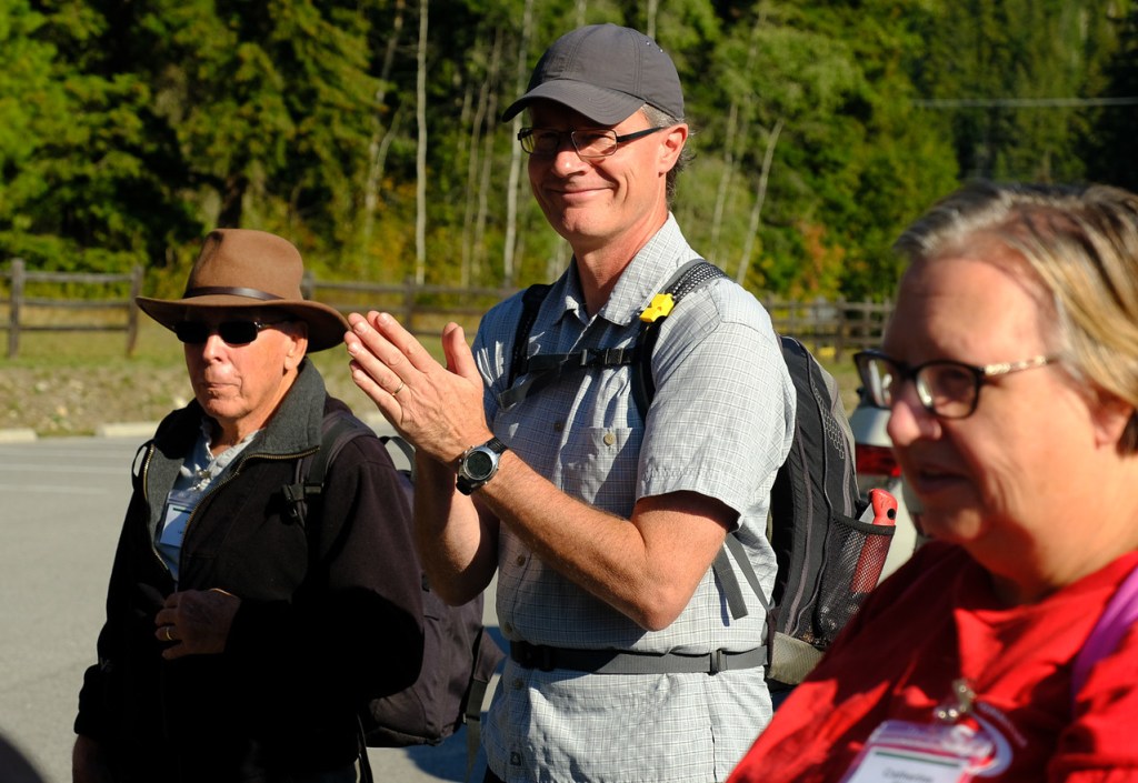 Phil says of his guided hiking events: “This idea of our walking in the land is a way of entering it and moving into a closer relationship with each other, and also with the landscape and the land.” He fuses the physical act of movement with the spiritual act of contemplation. He points to the labyrinth on the grounds of Sorrento Centre as an example of the weaving together of action and contemplation, “back-and-forth between the cerebral and the contemplative.” Put most succinctly, Phil says the work of the trail alliance and of his own guided hikes is a call to action: “Let’s take this time to pay attention.”