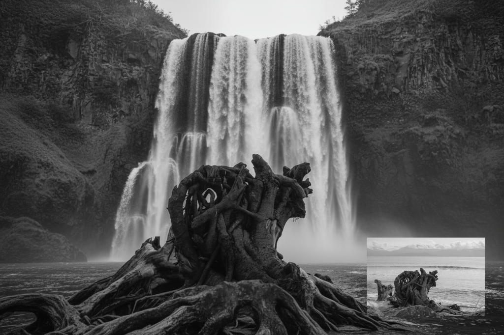 He’s right. The camera and the photographer must transform a three-dimensional space into a two-dimensional frame. Management of exposure, tone, sharpness, focus, composition, colour, and an almost endless set of adjustment possibilities have allowed the photographic artist to put our own stamp on the experience of being in the original setting.